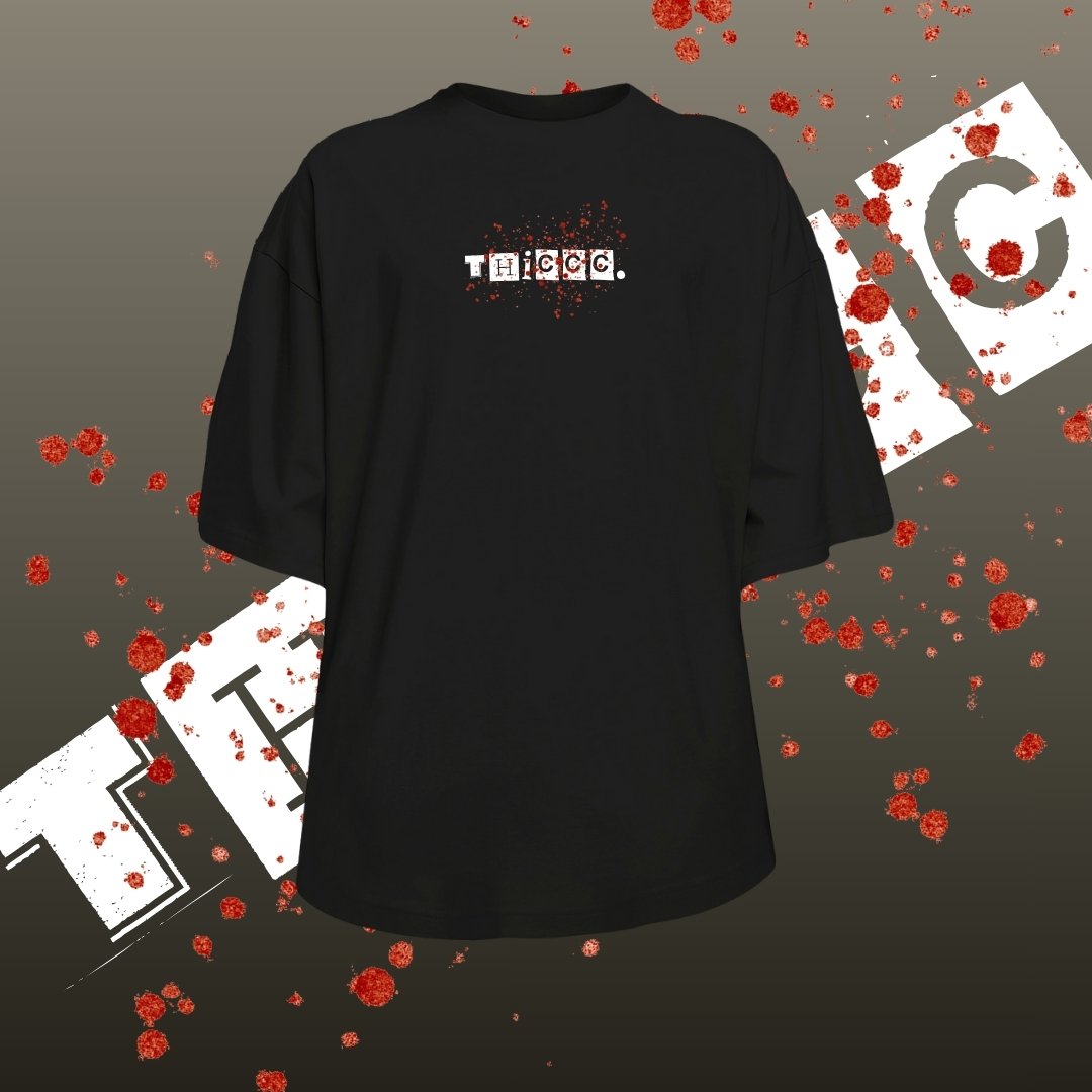 Machine wash 30°. Do not bleach. Tumble dry low heat. Low iron - NOT OVER THE THICCC PRINT. Do not dry clean. Wash inside out to protect the print.